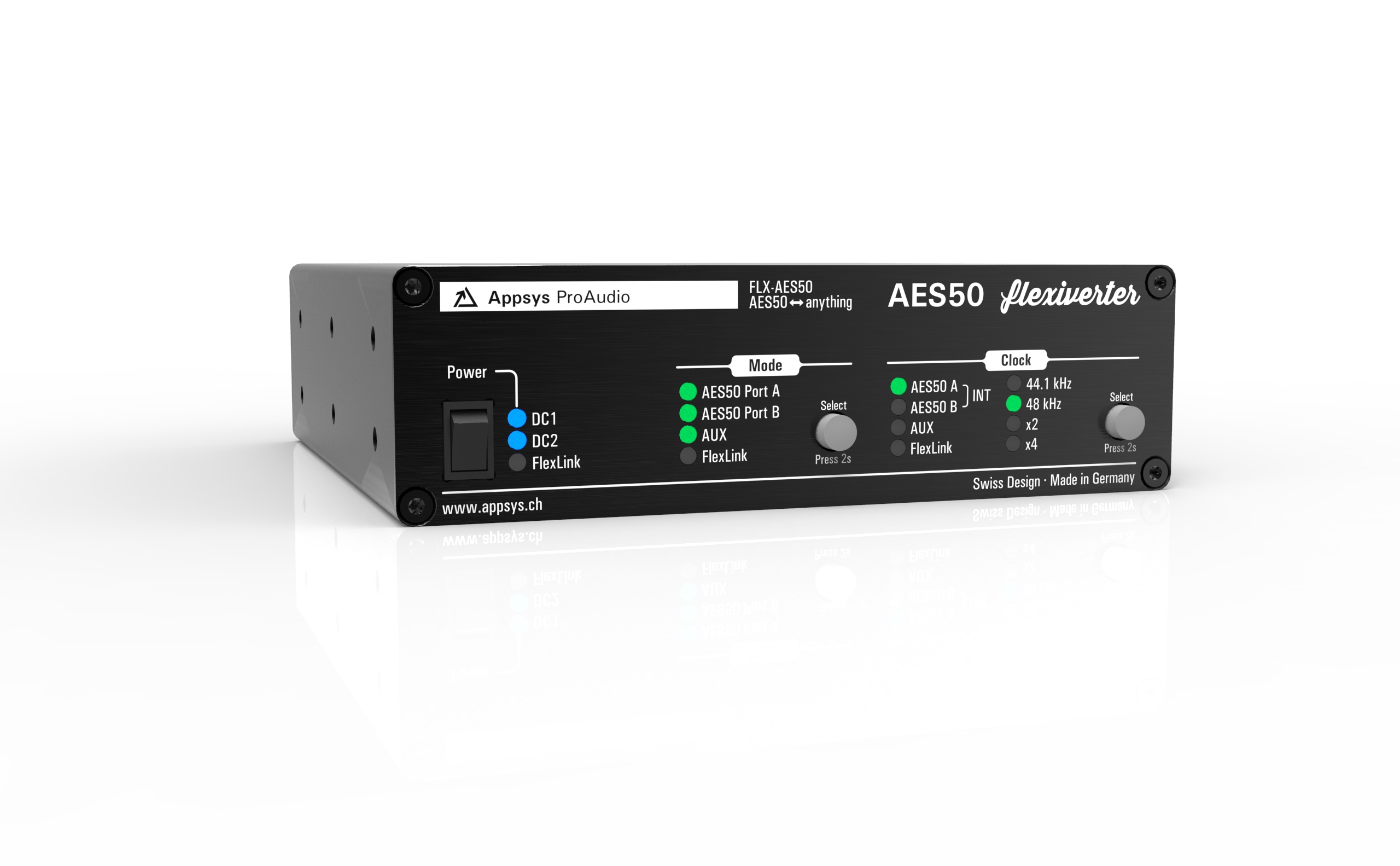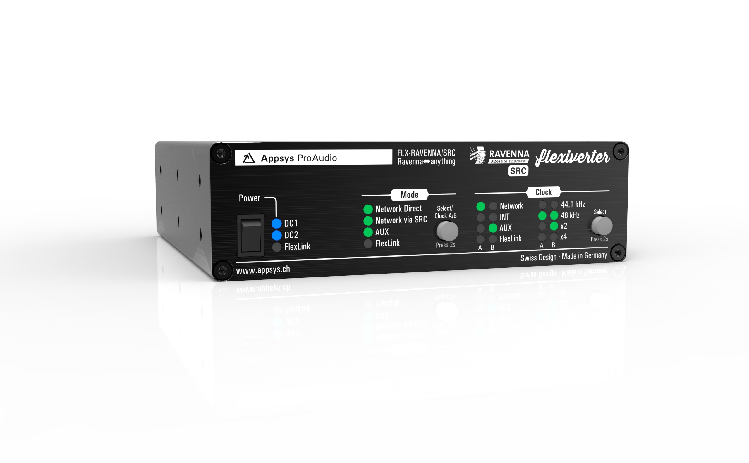To add even more power to your multiverter, a sample rate converter hardware module is available. It features up to 128 channel unidirectional or 64x64 channel bidirectional, asynchronous sample rate conversion between two arbitrary sample rates and interfaces. Finally you can convert 96kHz streams into 48kHz and vice versa, or accept any incoming signal without caring about the master clock!